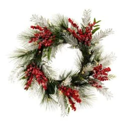 Vickerman Pre-Lit Artificial Christmas Wreath With Berries And Pine Cones (324493)