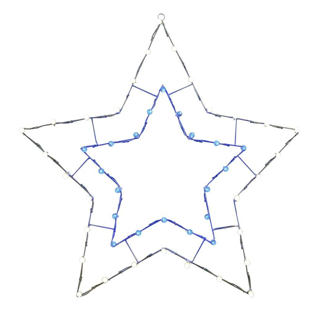 | Manufacturer Description: | 48″ x 48″ BlueWht 5Pt Star C7 Wire Motif (V146044) | ||